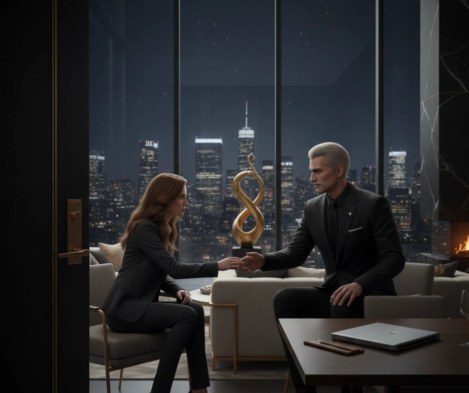She almost turned around at the sight of the penthouse. All glass, gold, and silence.