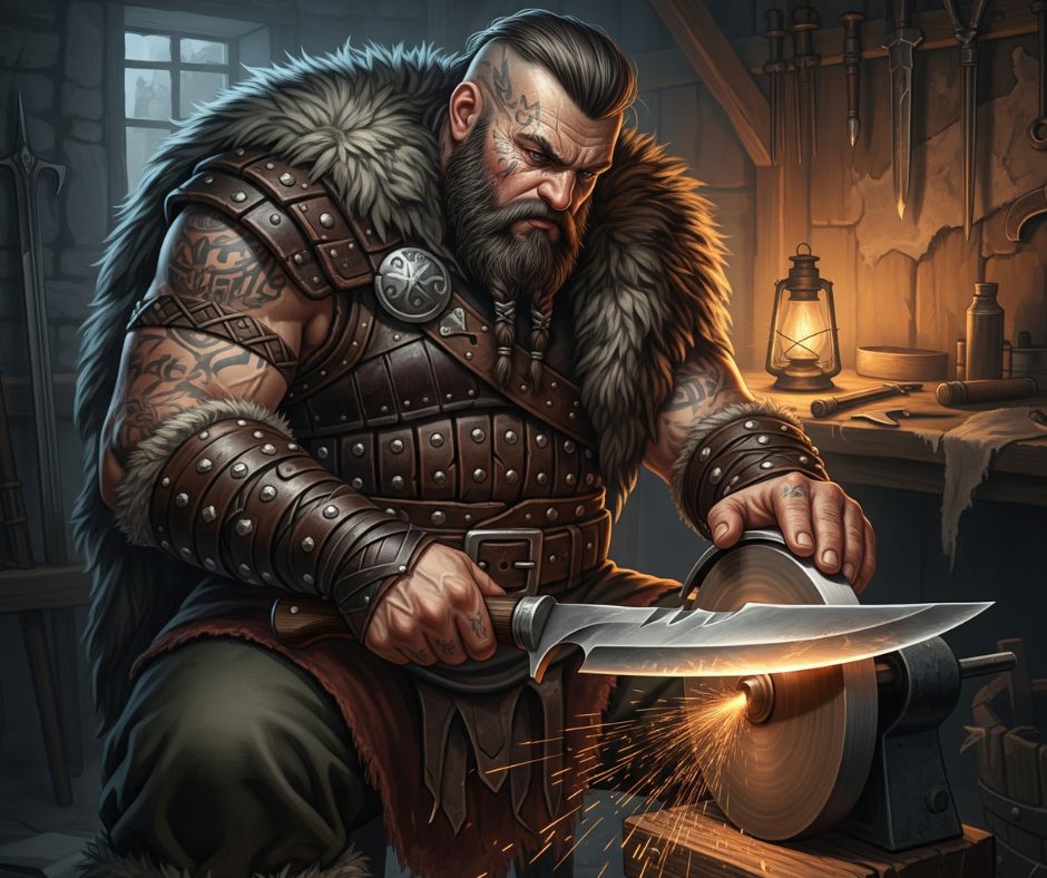 He wasn’t a paunchy, bored reenactor. He was a mountain of a man, poured into worn leather and shaggy furs, currently honing the edge of a wicked-looking seax with a slow, rhythmic scrape that seemed to be the only sound in the world.