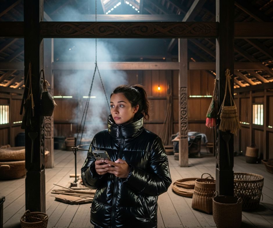 The first fat flakes of snow began to fall as Dr. Elara Vance pushed open the heavy wooden door of the longhouse. It was exactly as described in the tourism brochure: low-ceilinged, smoky, and reeking of woodsmoke and something vaguely animalic.